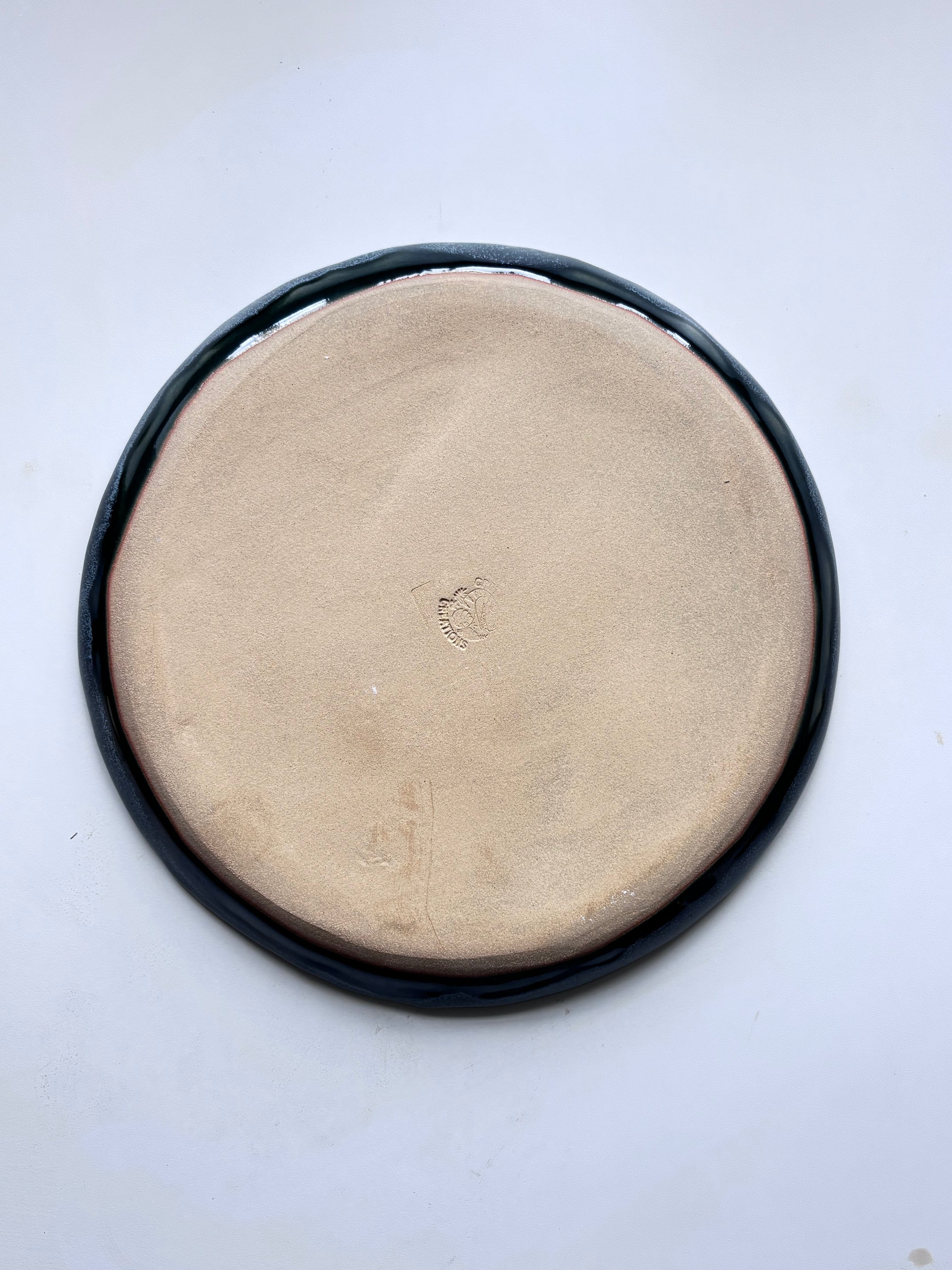 Indulge in the timeless beauty of our handmade stoneware plate. Crafted with care, each piece is uniquely adorned with an ancient sea reptile design in a captivating bubble glaze effect. Versatile for everyday use or as a stunning décor piece. Plus, it's dishwasher and microwave safe for added convenience. Elevate your table with this one-of-a-kind artistic creation.