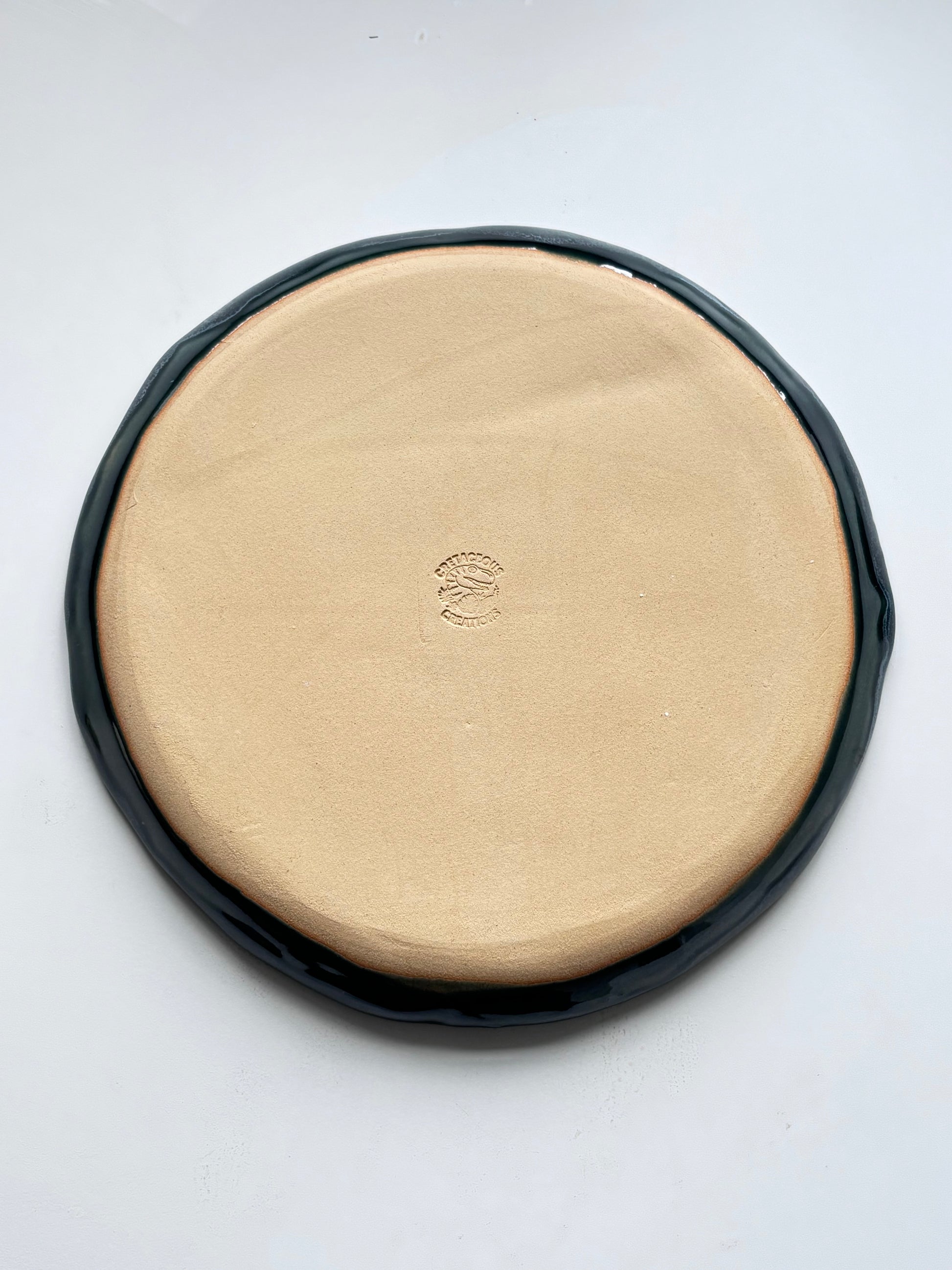Indulge in the timeless beauty of our handmade stoneware plate. Crafted with care, each piece is uniquely adorned with an ancient sea reptile design in a captivating bubble glaze effect. Versatile for everyday use or as a stunning décor piece. Plus, it's dishwasher and microwave safe for added convenience. Elevate your table with this one-of-a-kind artistic creation.